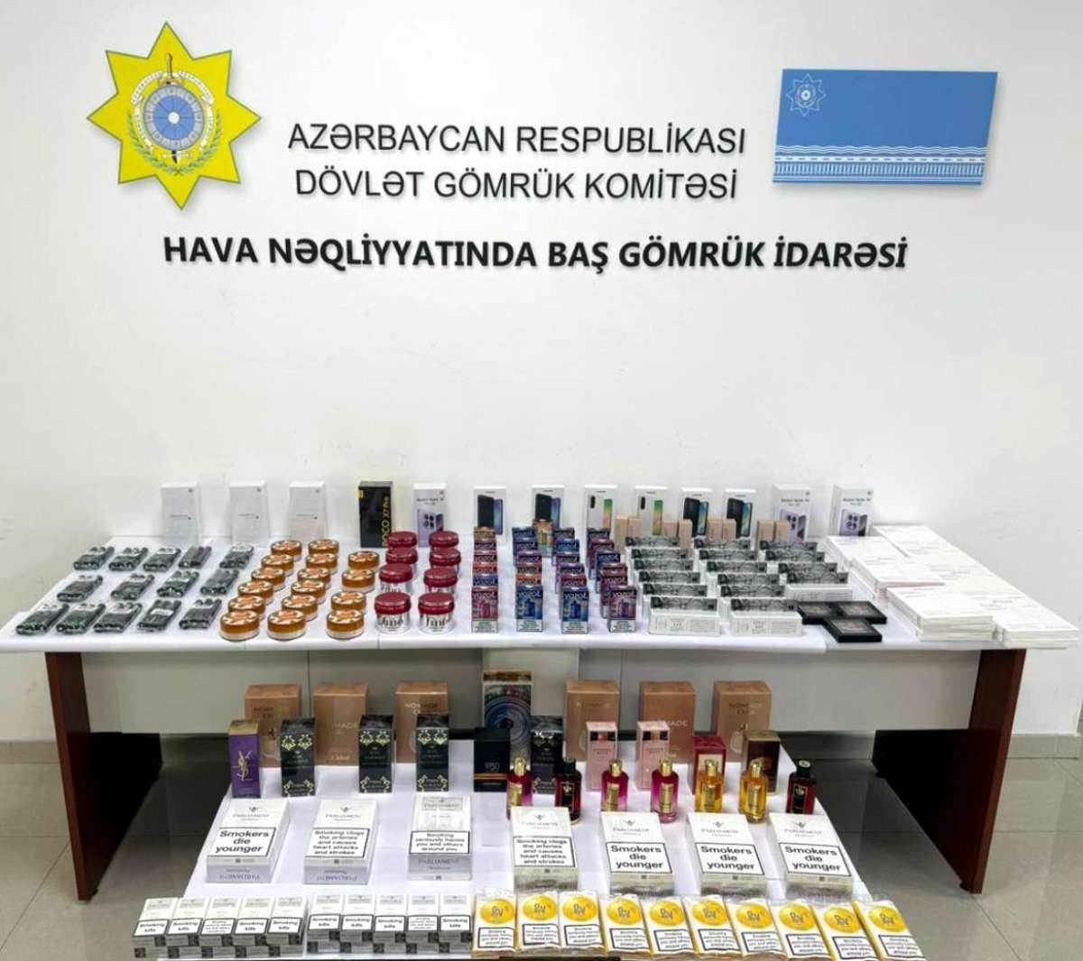 Avtomobilə keçirilən baxış zamanı ölkə ərazisinə şəxsi əşya adı altında gətirilən kommersiya təyinatlı mallar - 10 ədəd müxtəlif markalı mobil telefon, 25 ədəd elektron siqaret, 1810 ədəd siqaret və tütün məmulatı, xeyli miqdarda kosmetik vasitələr və ətirlər hüquqpozma predmeti kimi götürülüb.