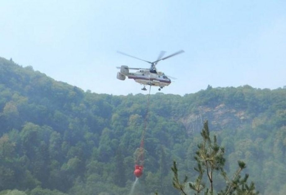 Fövqəladə Hallar Nazirliyinin (FHN) Aviasiya dəstəsinin “BE-200ÇS” amfibiya tipli təyyarəsi yanğınsöndürmə əməliyyatını davam etdirir.