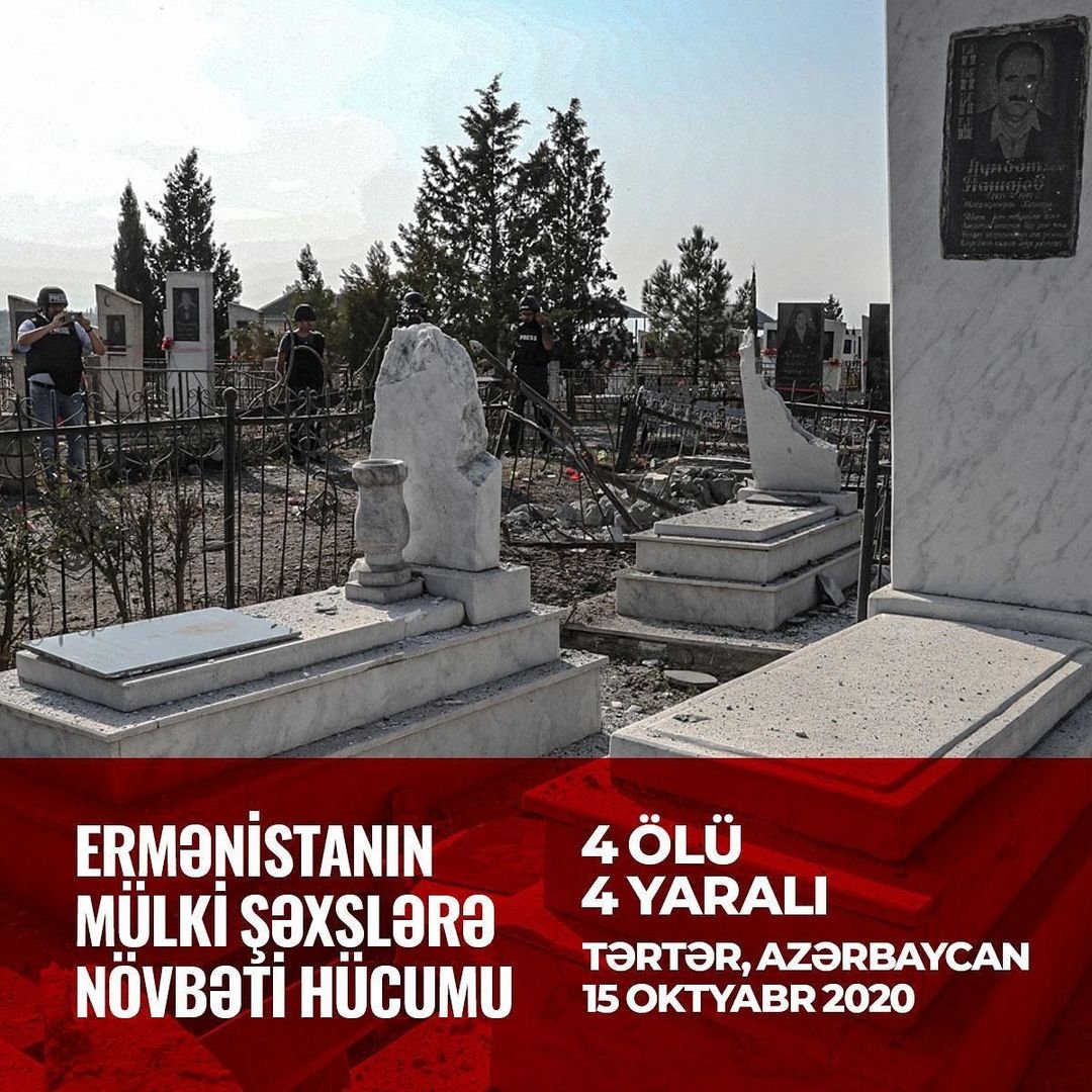 2020-ci il oktyabrın 15-də Azərbaycan Respublikasının Birinci vitse-prezidenti Mehriban Əliyeva rəsmi “İnstagram” səhifəsində Ermənistanın Tərtərdə dəfn zamanı insanları atəşə tutması ilə bağlı paylaşım edib.