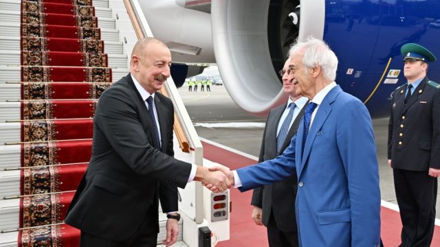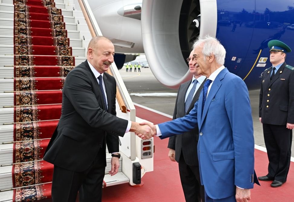 Trend xəbər verir ki, Moskvanın Vnukovo-2 beynəlxalq hava limanında dövlətimizin başçısını Rusiya xarici işlər nazirinin müavini Mixail Qaluzin və digər rəsmi şəxslər qarşıladılar.