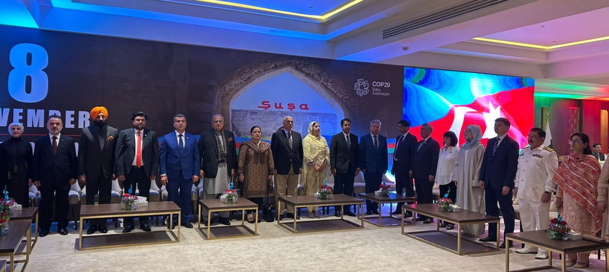Azərbaycan və Pakistan Dövlət himnlərinin səsləndirilməsindən sonra ölkəmizin Pakistandakı səfiri Xəzər Fərhadov hər il Azərbaycanda 8 Noyabr tarixinin Zəfər Günü kimi qeyd olunduğunu diqqətə çatdırıb. O, Azərbaycan və Pakistan arasında səmimi ikitərəfli münasibətləri vurğulayaraq ölkəmizin yaxın günlərdə Bakıda COP29-a ev sahibliyi edəcəyini və dünyanın müxtəlif ölkələrindən çox sayda qonağın iştirak edəcəyini bildirib.