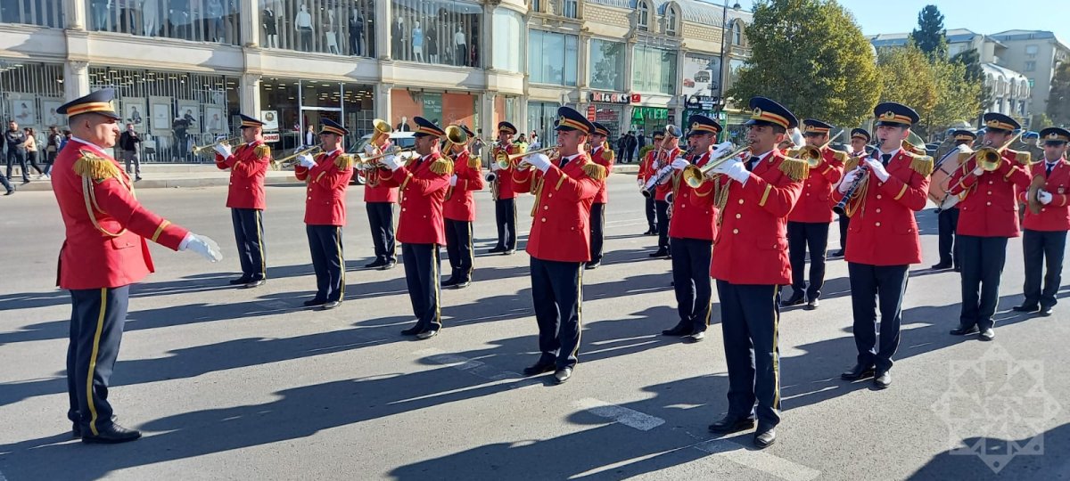 Gəncə şəhərində 8 Noyabr - Zəfər Günü münasibətilə hərbi orkestrin müşayiəti ilə hərbi qulluqçuların təntənəli yürüşü başlayıb.
