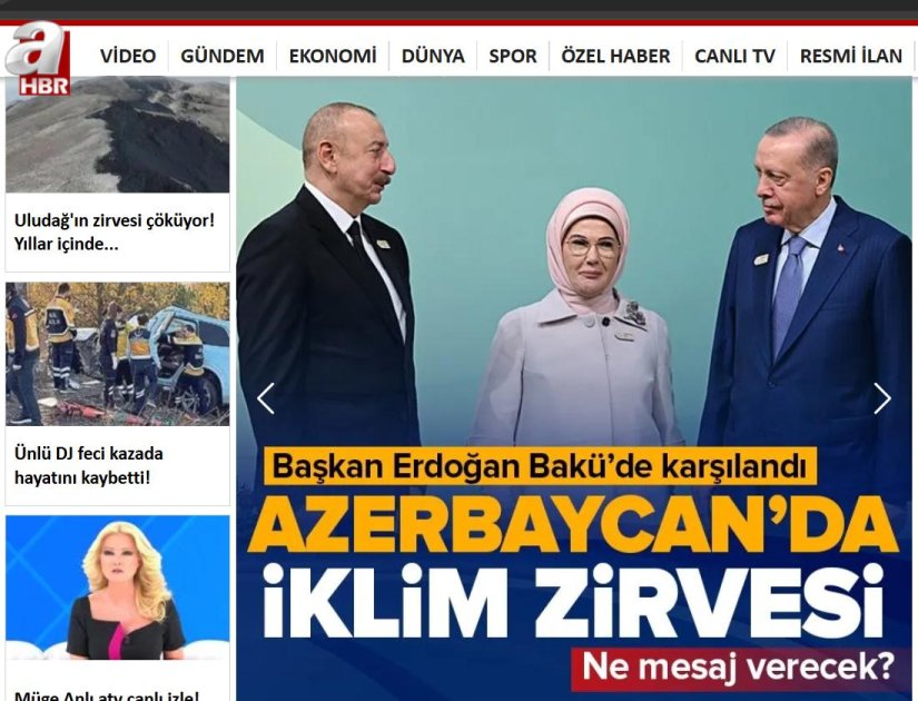 Azərbaycanda keçirilən BMT-nin İqlim Dəyişikliyi üzrə Çərçivə Konvensiyasının Tərəflər Konfransının 29-cu sessiyasının (COP29) Lliderlər Sammitinin açılış mərasimi və Prezident Rəcəb Tayyib Ərdoğanın qlobal müzakirələrdə iştirakı Türkiyə mediasında mərkəzi mövzulardan biri olaraq qalır. Türkiyədəki telekanalların, qəzetlərin və xəbər qaynaqlarının gündəmi məhz bu məsələlərə həsr olunub.