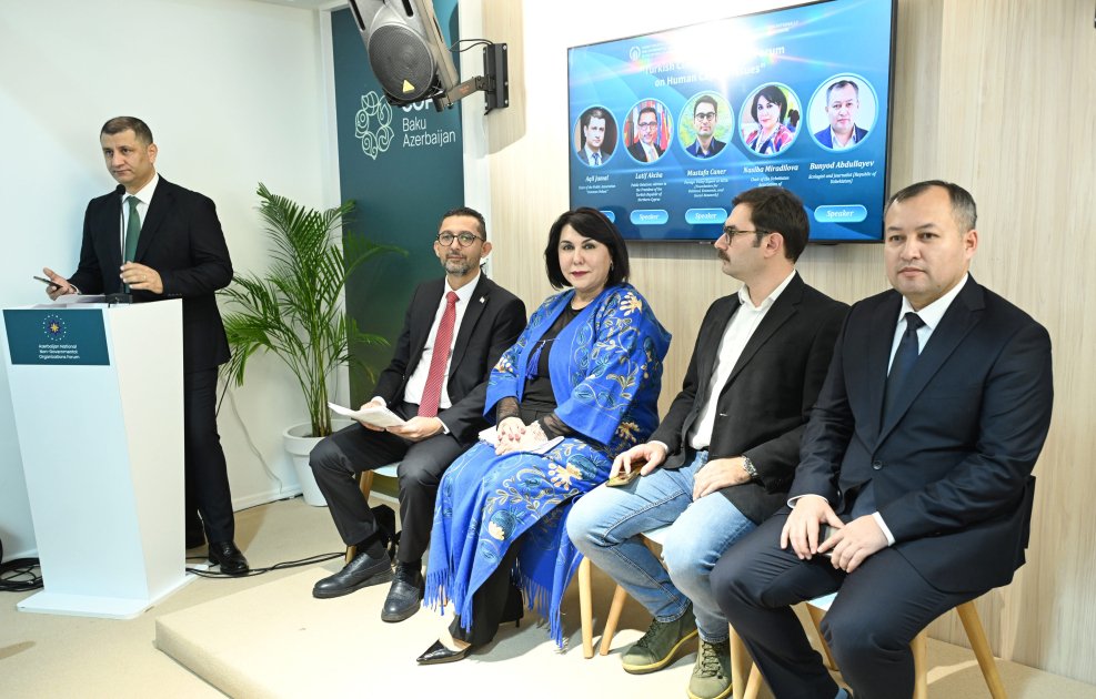 Qeyri-Hökumət Təşkilatlarına Dövlət Dəstəyi Agentliyinin icraçı direktoru Aygün Əliyeva çıxışında son dövrlər Azərbaycanın sosial-iqtisadi inkişafının yeni mərhələsində olduğunu deyib. Qeyd olunub ki, bu gün türk dövlətləri arasında əlaqələr ictimai-siyasi həyatın bütün sahələrində intensiv dinamika ilə inkişaf edir. Tarixdən gələn bir sıra bağlılıqlar və vətəndaş cəmiyyətlərinin qarşılıqlı əməkdaşlığı ölkələri daha da birləşdirir. COP29-un insan kapitalına həsr edilmiş tematik günündə türk dövlətlərini təmsil edən QHT-lərin Forumunun keçirilməsi çox önəmlidir. Bu baxımdan, türk coğrafiyasının uzunmüddətli inkişafına yalnız insan kapitalının gücləndirilməsi vasitəsilə nail olmaq və regionun üzləşdiyi ekoloji təhdidlərlə birgə mübarizə aparmaq olar.