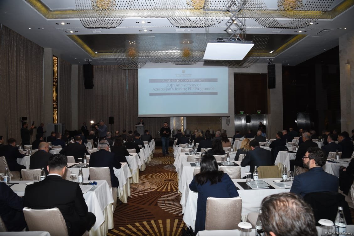 Bu gün Bakı şəhərində Azərbaycanın NATO-nun Sülh naminə Tərəfdaşlıq (SNT) proqramının Çərçivə Sənədinə qoşulmasının 30 illiyinə həsr olunmuş elmi-praktiki konfrans keçirilib.