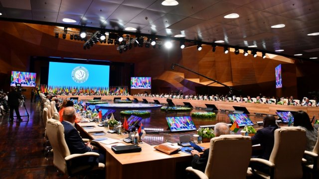 Əziz dostlar, iqlim dəyişikliyi, su qıtlığı, ərzaq təhlükəsizliyi, məcburi miqrasiya kimi məsələlər bizim daimi diqqətimizi tələb edir. İnkişaf etməkdə olan kiçik ada dövlətləri iqlim dəyişikliyinin təsirlərinə daha həssasdır və ekzistensial təhlükə ilə üzləşirlər. Miqrant qayıqlarının Aralıq dənizində qəzaya uğramasının dəhşətli fotoları xüsusilə narahatedicidir.