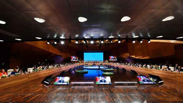 Sonra nazir Ceyhun Bayramov çıxış üçün sözü Azərbaycan Respublikasının Prezidenti, Qoşulmama Hərəkatının sədri İlham Əliyevə verdi.
