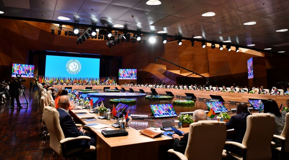 Xanımlar və cənablar, multilateralizmin əsl müdafiəçisi və BMT-dən sonra ikinci böyük təsisat kimi Qoşulmama Hərəkatı yenidən formalaşan dünya nizamında öz yerini tapmalıdır. Biz “Bandunq prinsipləri” ətrafında qətiyyətlə dayanmalı, suverenliyin və ərazi bütövlüyünün pozulması, ölkələrin daxili işlərinə müdaxilə hallarına qarşı öz səsimizi ucaltmalıyıq. Hərəkatımızın dünya məsələlərində daha ön mövqedə olması mühüm əhəmiyyət kəsb edir.