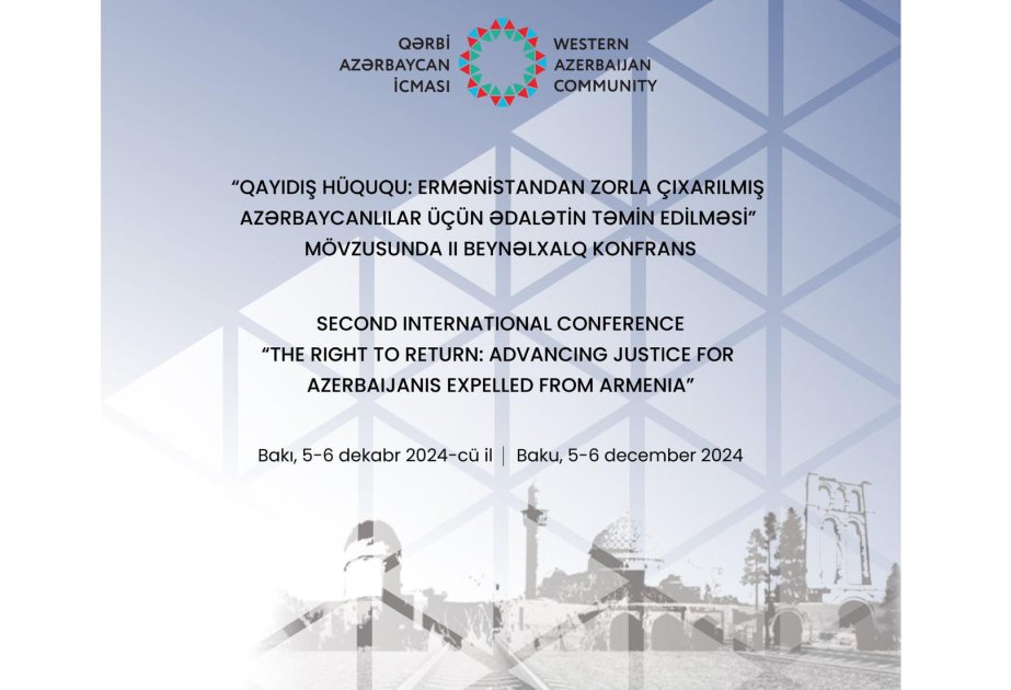 Artıq məlumat verildiyi kimi, dekabrın 5-6-da Bakıda Qərbi Azərbaycan İcmasının (QAİ) “Qayıdış hüququ: Ermənistandan zorla çıxarılmış azərbaycanlılar üçün ədalətin təmin edilməsi” mövzusunda ikinci beynəlxalq konfransı keçiriləcək. Açılış günü baş tutacaq beş paneldə Qərbi azərbaycanlıların qayıdış hüququ, onların beynəlxalq hüququn norma və prinsiplərinə əsasən malik olduqları hüquqlardan bəhs ediləcək, həmçinin iştirakçılar arasından 10 ölkədən 16 şəxsə Qərbi Azərbaycan İcmasının fəxri üzvlük vəsiqələri veriləcək. Dekabrın 6-da isə tədbirin mədəni hissəsi keçiriləcək.