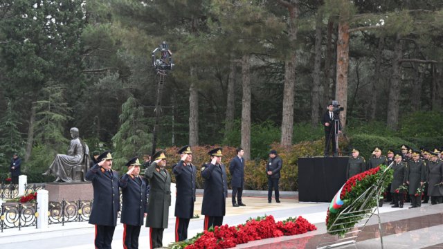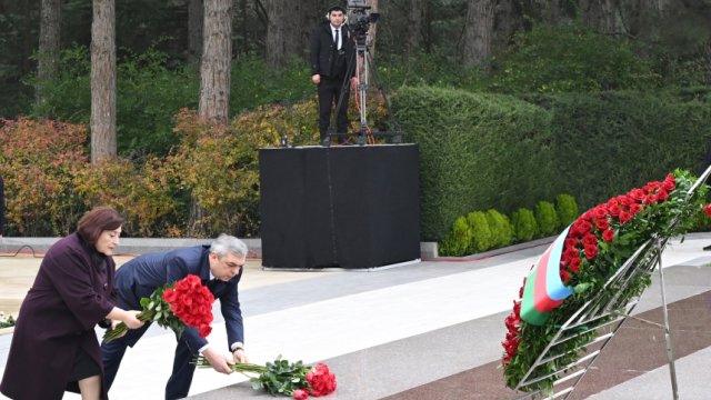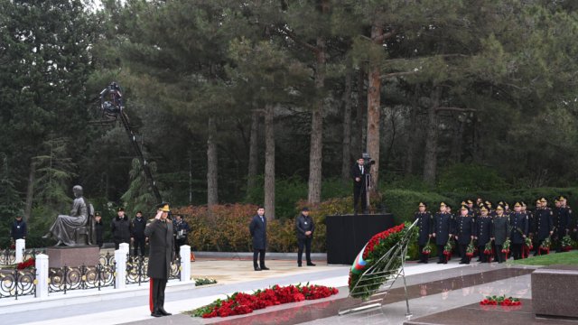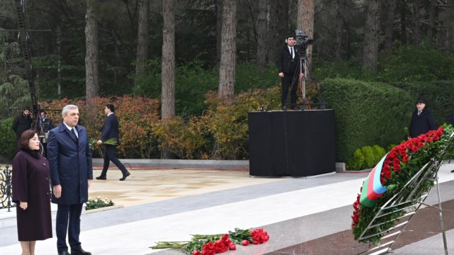 AZƏRTAC xəbər verir ki, Milli Məclisin sədri Sahibə Qafarova, Prezident Administrasiyasının rəhbəri Samir Nuriyev, digər dövlət və hökumət rəsmiləri, hərbi qulluqçular, hüquq-mühafizə orqanlarının əməkdaşları, diplomatik korpusun nümayəndələri Fəxri xiyabanda Ümummilli Lider Heydər Əliyevin məzarını ziyarət edərək abidəsi önünə gül dəstələri qoyub, müasir müstəqil Azərbaycanın banisi və qurucusu Ulu Öndərin xatirəsinə dərin ehtiramlarını bildiriblər.