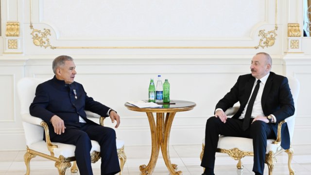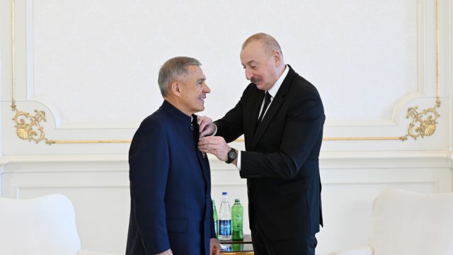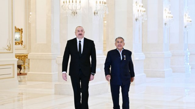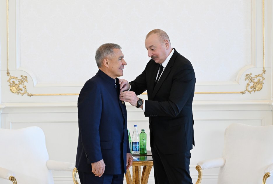 AZƏRTAC xəbər verir ki, əvvəlcə Rusiya Federasiyasının Tatarıstan Respublikasının Rəisi Rüstəm Minnixanovun Azərbaycanın “Dostluq” ordeni ilə təltifedilmə mərasimi oldu. Prezident İlham Əliyevin Sərəncamına əsasən, Azərbaycan Respublikası ilə Rusiya Federasiyası arasında dostluq və əməkdaşlıq əlaqələrinin inkişafında xüsusi xidmətlərinə görə Rüstəm Minnixanov “Dostluq” ordeni ilə təltif edilib.