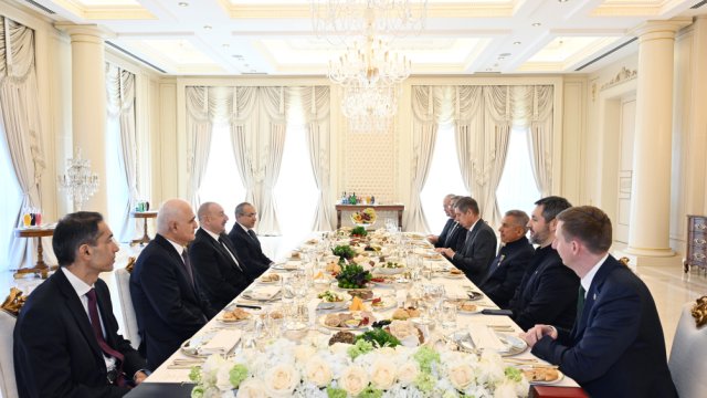 Sonra Azərbaycan Respublikasının Prezidenti İlham Əliyev və Rusiya Federasiyasının Tatarıstan Respublikasının Rəisi Rüstəm Minnixanov birgə nahar ediblər.