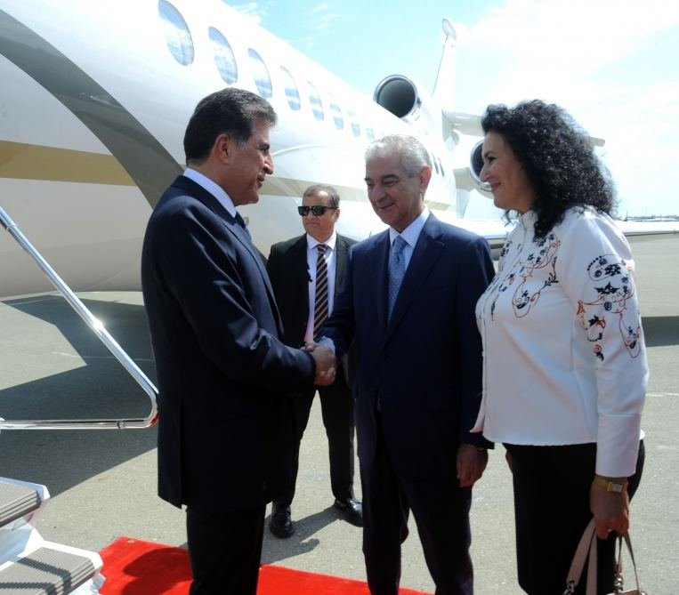 İraq Kürdüstan Regionunun başçısı Neçirvan Bərzanini hava limanında Azərbaycan Respublikası Baş nazirinin müavini Əli Əhmədov və digər rəsmi şəxslər qarşıladılar.