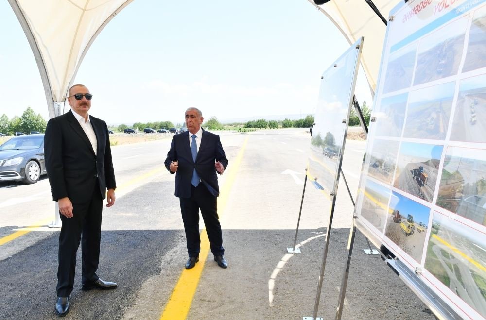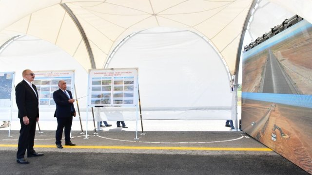 Trend xəbər verir ki, dövlətimizin başçısı 1-ci texniki dərəcəli Əhmədbəyli-Füzuli-Şuşa avtomobil yolunun Füzuli Beynəlxalq Hava Limanına qədər olan 27 kilometrlik hissəsinin tikintisi ilə tanış olub.