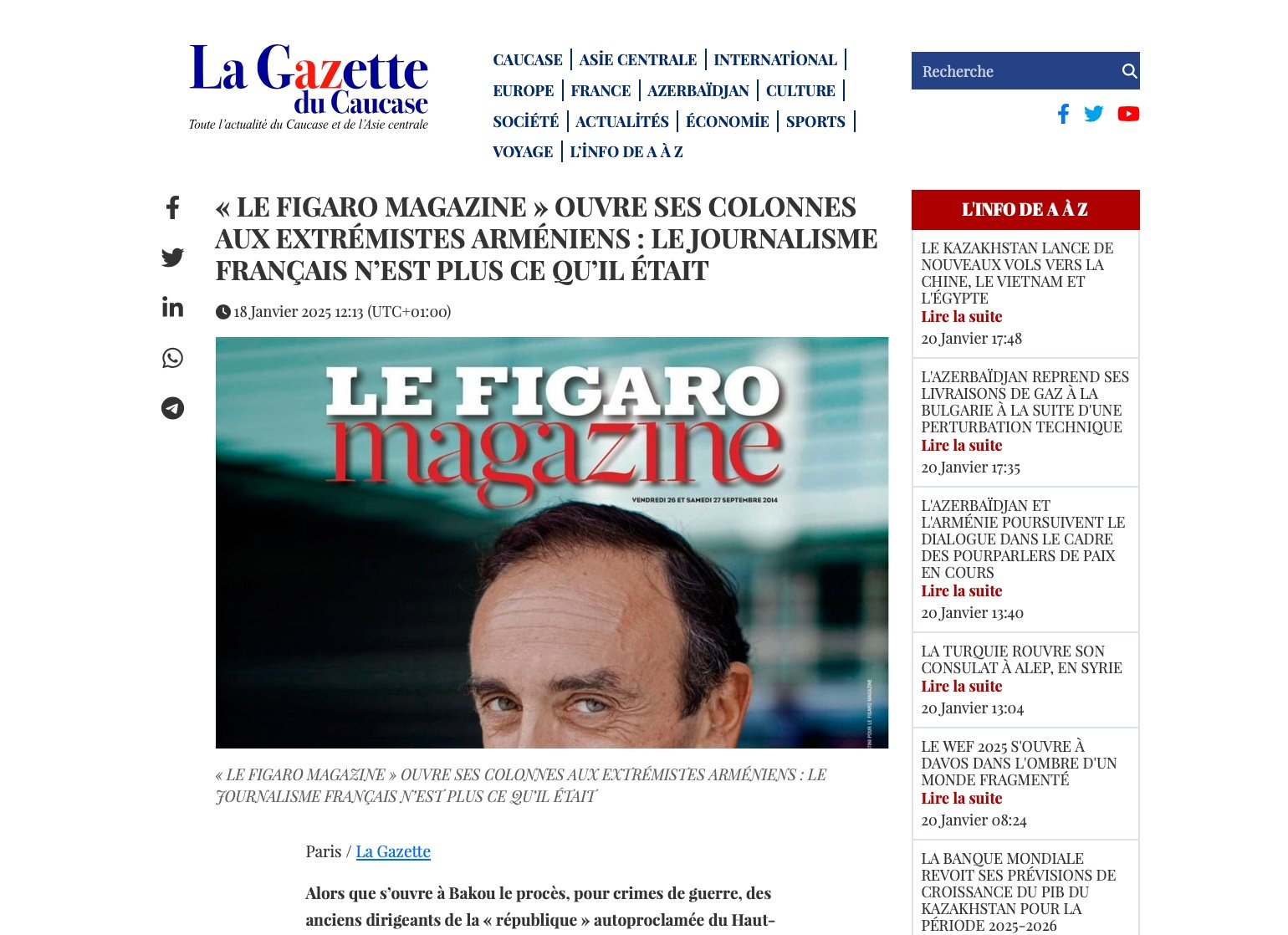 “La Gazette du Caucase” nəşri öz məqaləsində “Le Figaro”nun redaksiya siyasətinin həm etik, həm də faktiki nöqsanlarını ifşa edir.