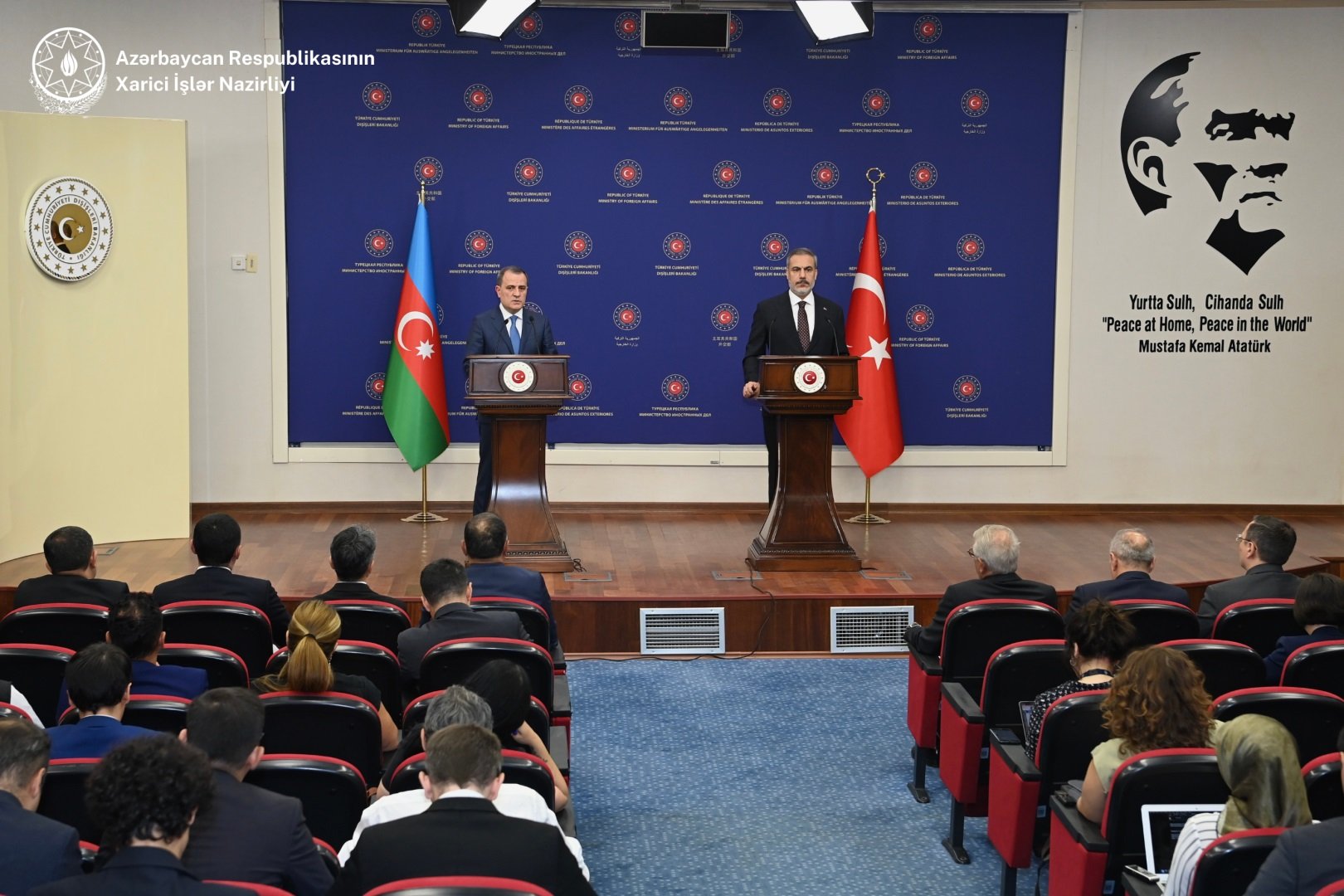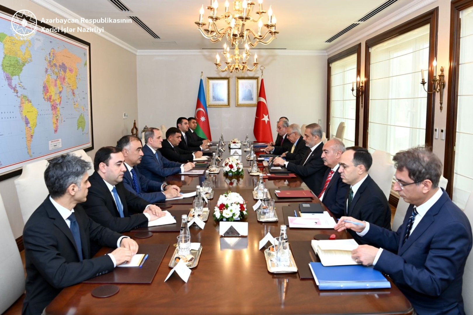 Azərbaycan Respublikasının xarici işlər naziri Ceyhun Bayramov Türkiyə Respublikasına rəsmi səfəri çərçivəsində xarici işlər naziri Hakan Fidanla görüşüb.