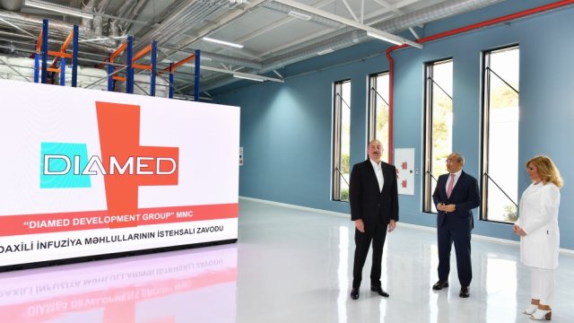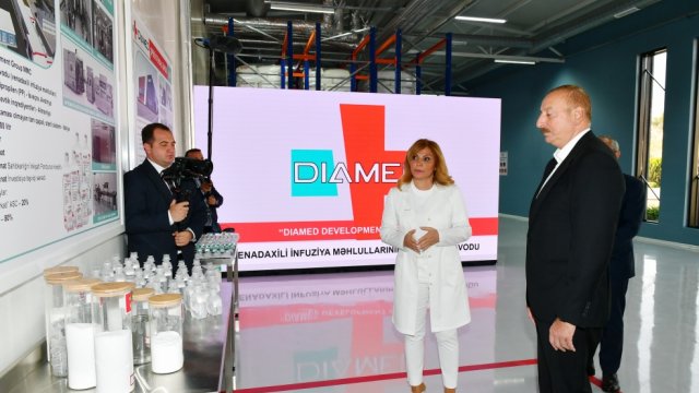 Azərbaycan Respublikasının Prezidenti İlham Əliyev Bakının Pirallahı rayonunda “Diamed” dərman istehsalı zavodunun açılışında iştirak edib.