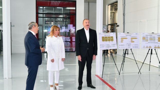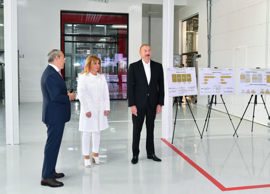 Prezident İlham Əliyev zavodu işə saldı.