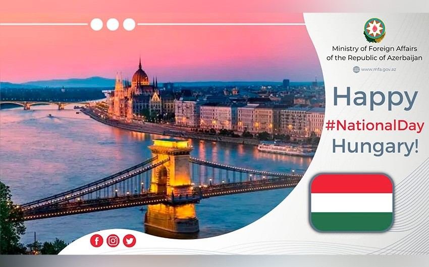 “Macarıstanın Milli Günü münasibətilə Macarıstan xalqına və hökumətinə ən səmimi təbriklərimizi və ən xoş arzularımızı çatdırırıq. Azərbaycan-Macarıstan ənənəvi dostluq münasibətlərinin və qarşılıqlı faydalı əməkdaşlığın daha da möhkəmlənməsini səbirsizliklə gözləyirik”, - XİN-in paylaşımında qeyd edilir.