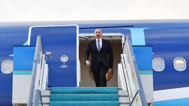 Prezident İlham Əliyevi rəsmi şəxslər qarşıladılar.