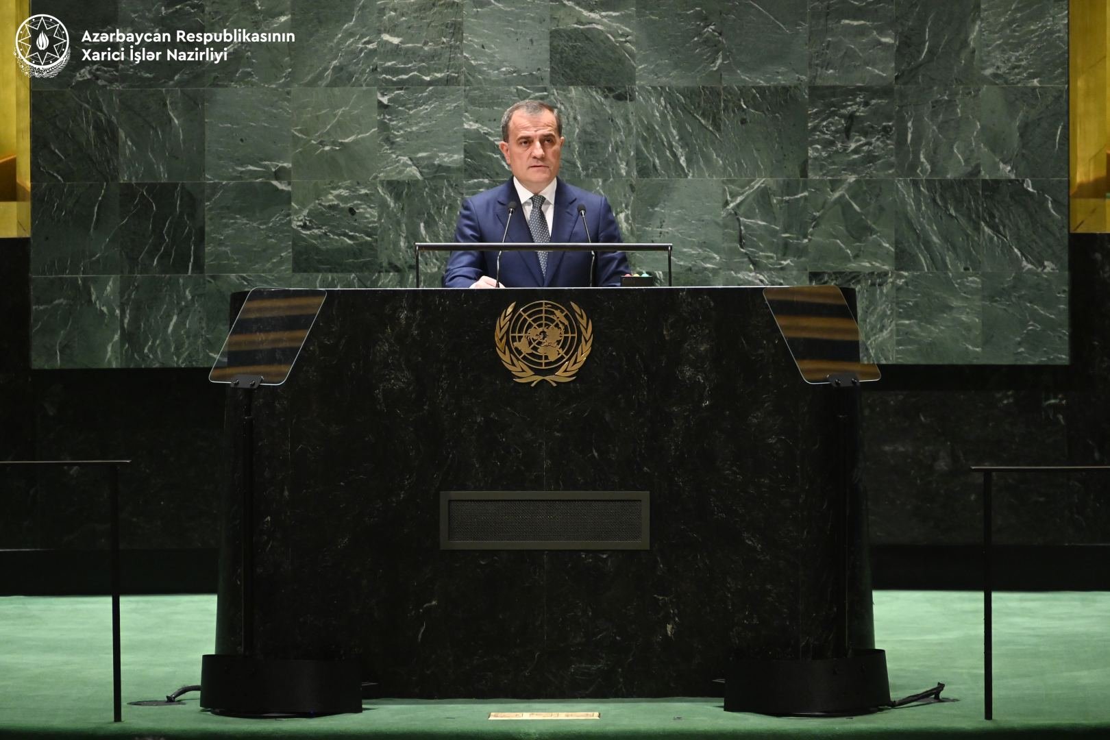 Trend xəbər verir ki, bu barədə Azərbaycanın xarici işlər naziri Ceyhun Bayramov Nyu-Yorkda BMT Baş Assambleyasının 78-ci sessiyasının “Etimadın yenidənqurulması və qlobal həmrəyliyin yenidən alovlandırılması: 2030-cu il Gündəliyi və onun Dayanıqlı İnkişaf Məqsədləri üzrə sülh, firavanlıq, tərəqqi və hamı üçün dayanıqlılıq istiqamətində fəaliyyətin sürətləndirilməsi” mövzusunda ümumi müzakirələri zamanı çıxışında bildirib.