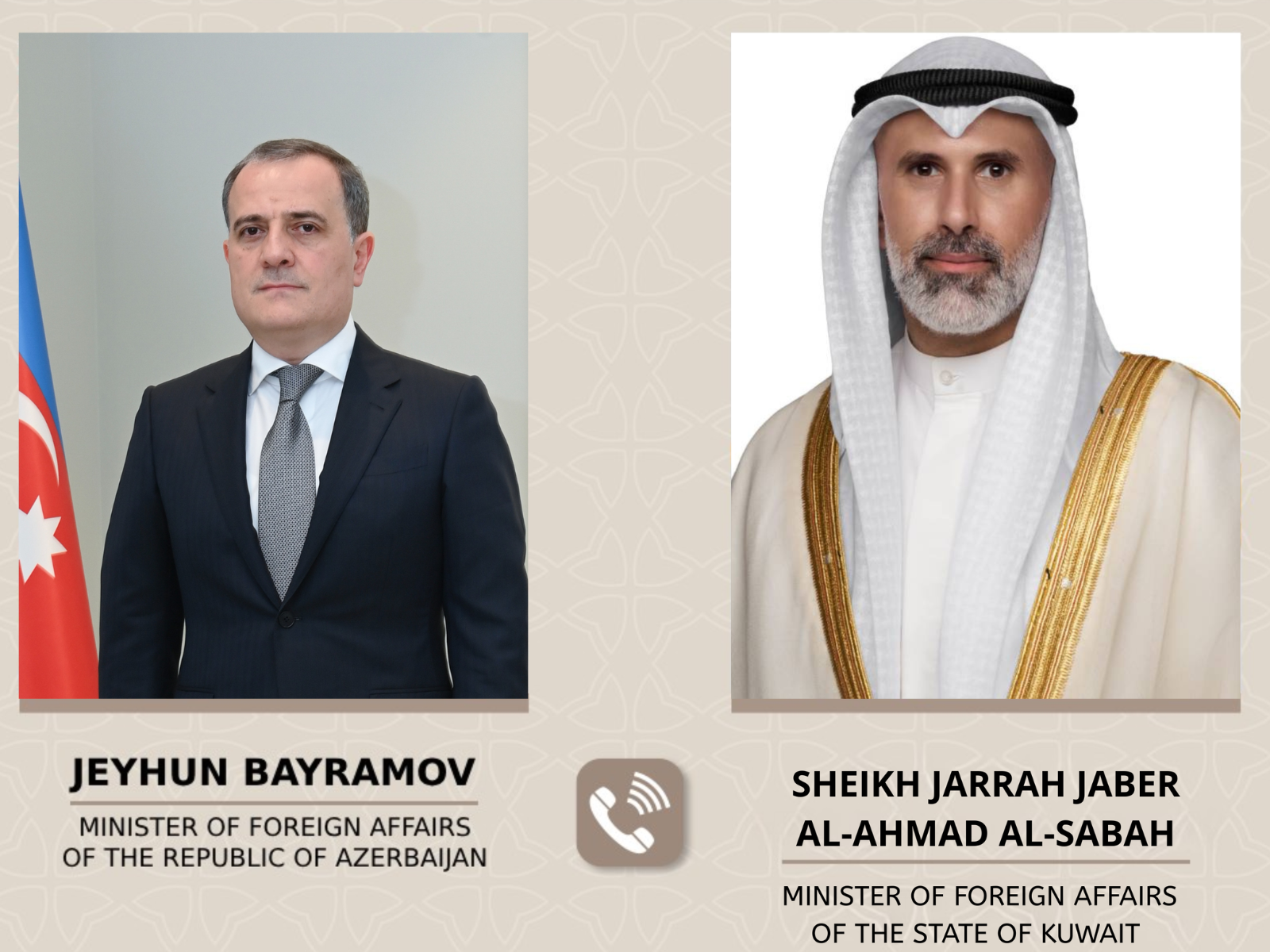 2 mart tarixində Azərbaycan Respublikası xarici işlər naziri Ceyhun Bayramov ilə Küveyt Dövlətinin xarici işlər naziri Şeyx Cərrah Cabir əl-Əhməd əl-Sabah arasında telefon danışığı aparılıb.