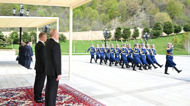 Fəxri qarovul dəstəsi hərbi marşın sədaları altında Azərbaycan Prezidenti İlham Əliyevin və Çexiyanın Baş naziri Andrey Babişin qarşısından keçdi.