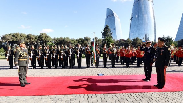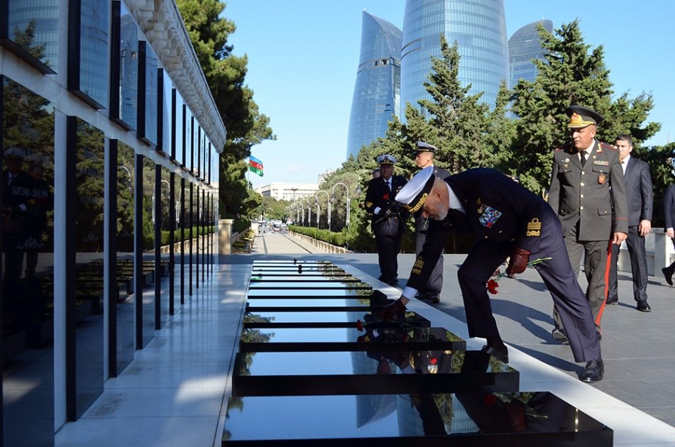 Müdafiə Nazirliyinin mətbuat xidmətindən AZƏRTAC-a verilən məlumata görə, əvvəlcə qonaqlar Şəhidlər xiyabanında ölkəmizin müstəqilliyi və ərazi bütövlüyü uğrunda canlarından keçən Vətən övladlarının xatirələrini ehtiramla yad ediblər.