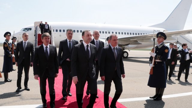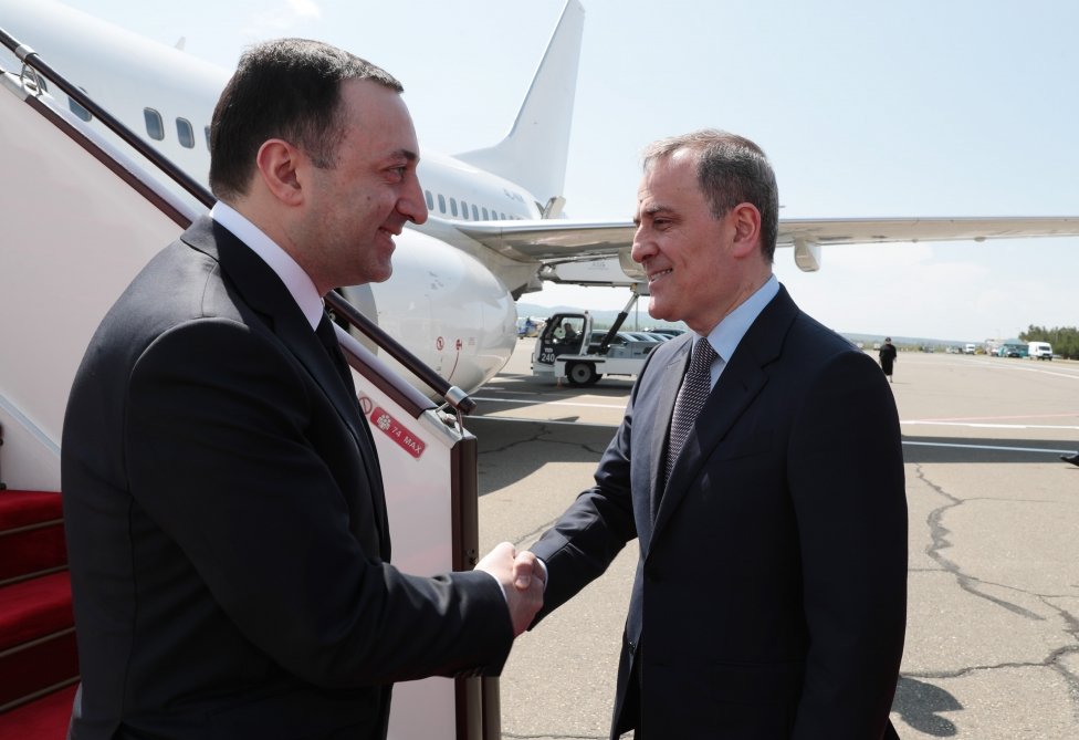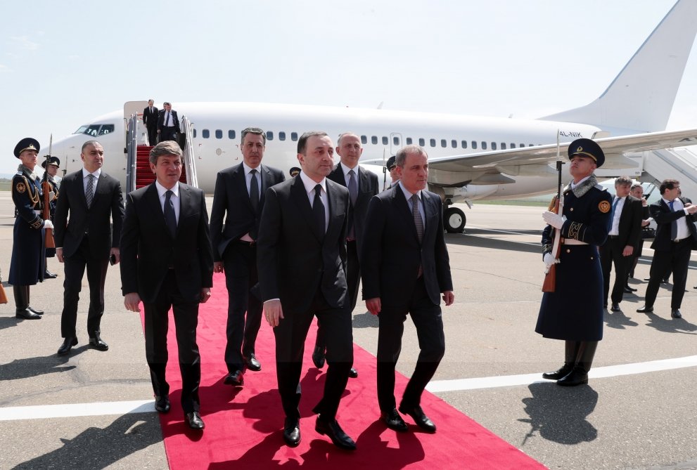 Gürcüstanın Baş naziri İrakli Qaribaşvilini Azərbaycanın xarici işlər naziri Ceyhun Bayramov və digər rəsmi şəxslər qarşıladılar.