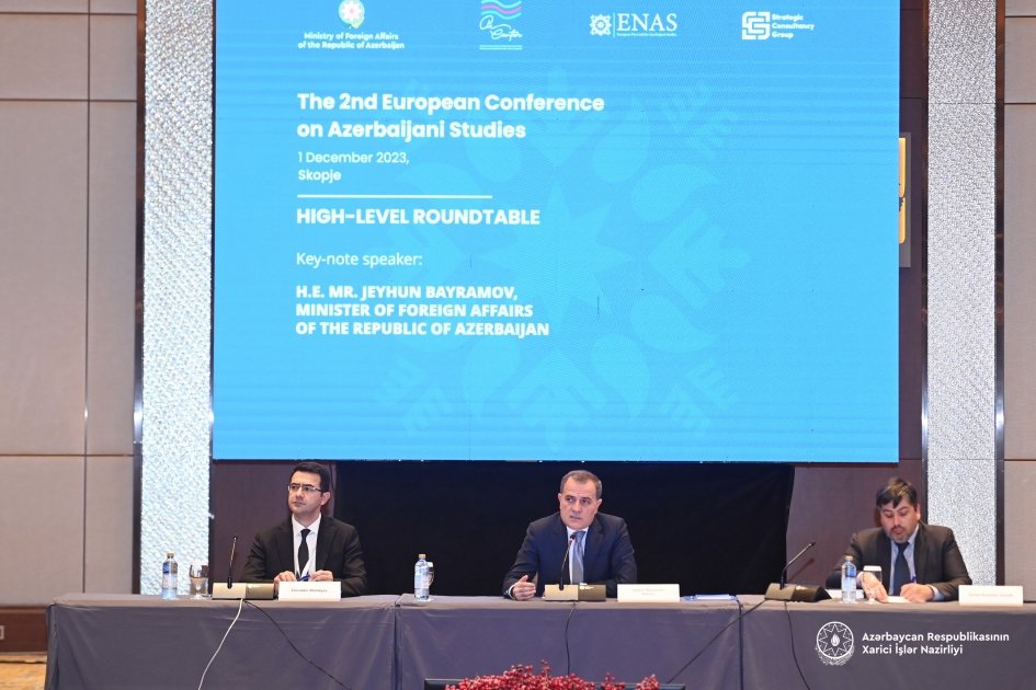 Dekabrın 1-də xarici işlər naziri Ceyhun Bayramov Şimali Makedoniyanın paytaxtı Skopye şəhərində təşkil olunan Azərbaycan tədqiqatları üzrə II Avropa Konfransının xüsusi sessiyasında çıxış edib.