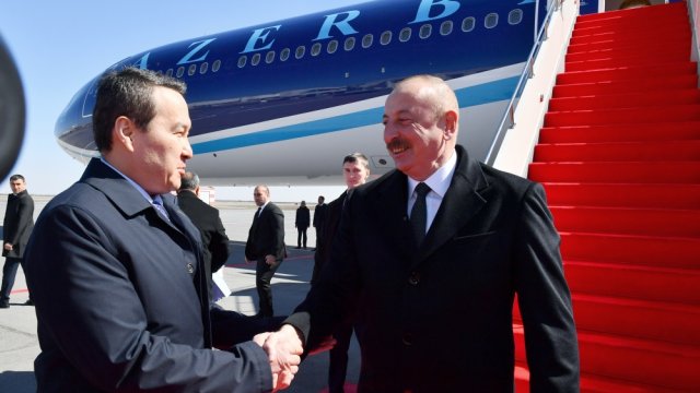 Prezident İlham Əliyevi Qazaxıstanın Baş naziri Alixan Smailov və digər rəsmi şəxslər qarşıladılar.