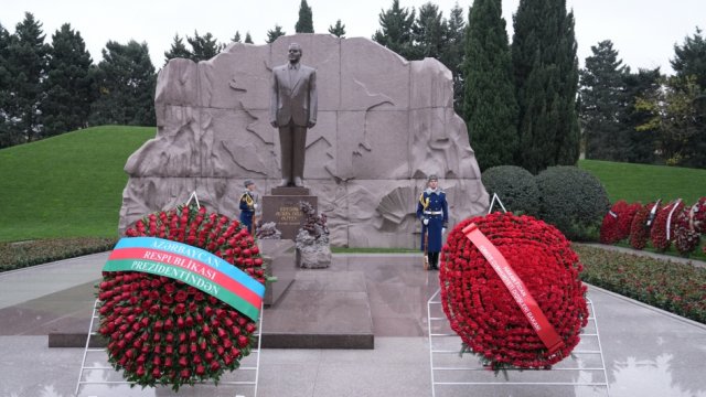 AZƏRTAC xəbər verir ki, əvvəlcə Fəxri xiyabana gələn Hakan Fidan xalqımızın Ümummilli Lideri, müasir müstəqil Azərbaycan dövlətinin memarı və qurucusu Heydər Əliyevin xatirəsini ehtiramla yad edib, məzarı önünə əklil qoyub.
