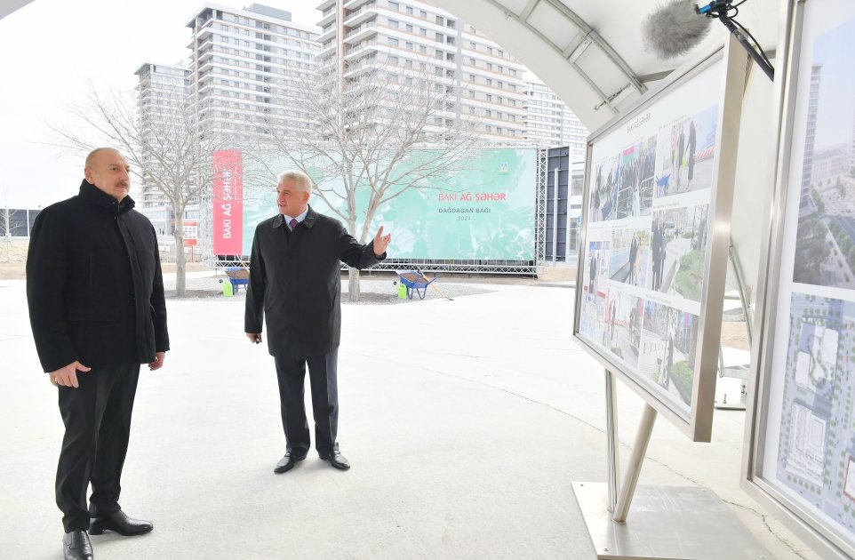 Azərbaycan Respublikasının Prezidenti İlham Əliyev yanvarın 22-də Bakı Ağ Şəhərin Mərkəzi Park Kvartalında həyata keçirilən inşaat, infrastruktur və abadlıq işləri, həmçinin tikintisi yekunlaşan Bakı Ağ Şəhər Ofis binasında yaradılan şərait ilə tanış olub.