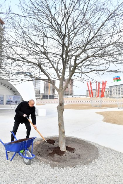 Prezident İlham Əliyev Bakı Ağ Şəhərin Mərkəzi Park Kvartalında tikinti, abadlıq işləri və Ofis binasında yaradılan şərait ilə tanış olub (FOTO)