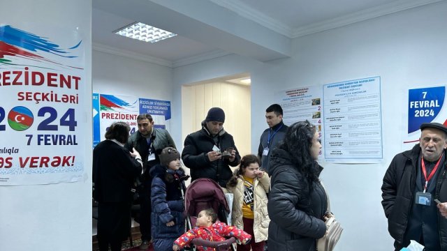 Seçicilər ailələri ilə birlikdə Azərbaycanda keçirilən Prezident seçkilərində səsverməyə gəlirlər.