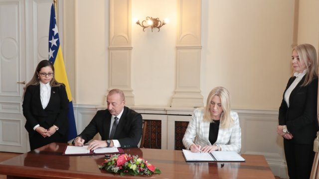 AZƏRTAC xəbər verir ki, sənədi Azərbaycan Respublikasının Prezidenti İlham Əliyev və Bosniya və Herseqovinanın Rəyasət Heyətinin Sədri xanım Jelka Tsviyanoviç imzaladılar.