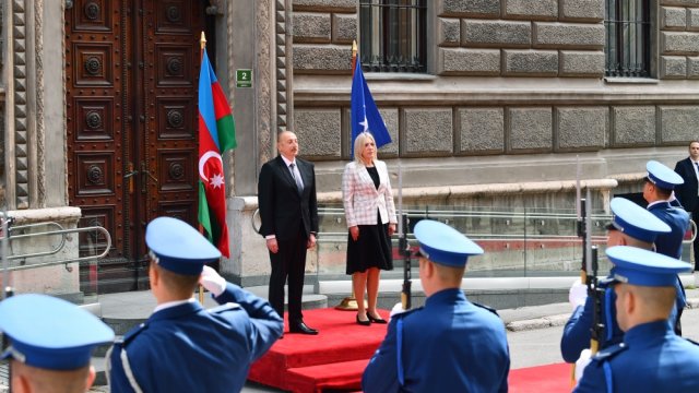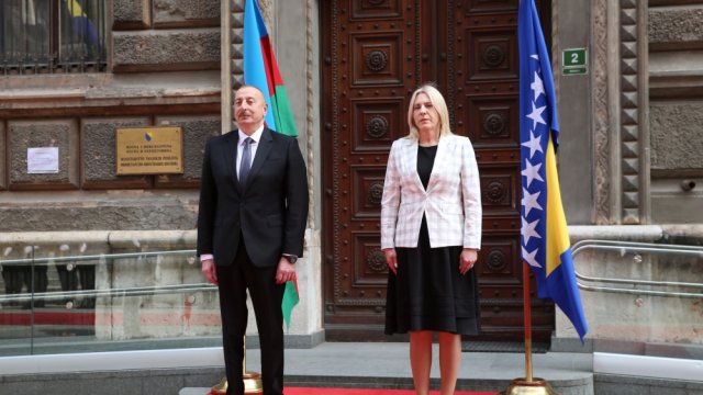 Dövlətimizin başçısı İlham Əliyev və Bosniya və Herseqovinanın Rəyasət Heyətinin Sədri Jelka Tsviyanoviç fəxri qarovul dəstəsinin qarşısından keçdilər.