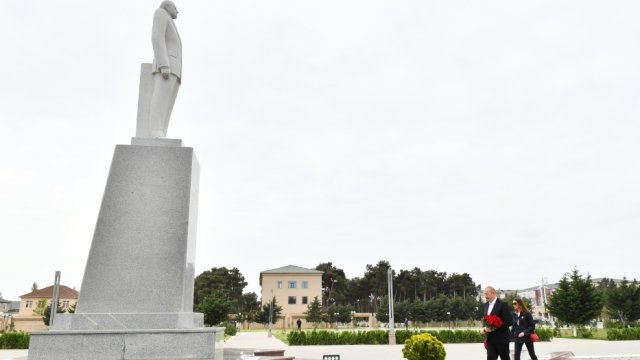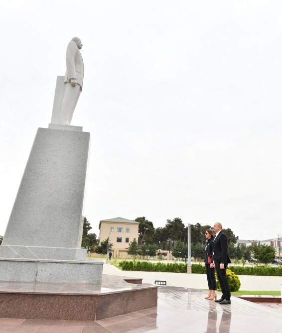 AZƏRTAC xəbər verir ki, dövlətimizin başçısı və birinci xanım Salyan şəhərində Ulu Öndər Heydər Əliyevin abidəsini ziyarət ediblər.