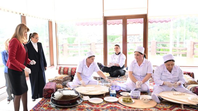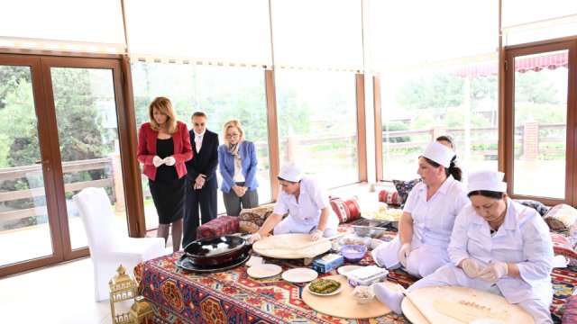 Sonra Bolqarıstanın birinci xanımına milli mətbəximizin təamlarının hazırlanma üsulları nümayiş edilib.