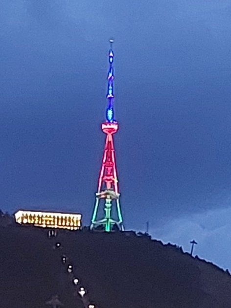 Mayın 28-də Gürcüstanın paytaxtı Tbilisi səhərinin ən hündür parkında - Mtatsminda parkında yerləşən televiziya qülləsi və Kür çayı üzərindəki “Sülh körpüsü” Azərbaycan bayrağının rəngləri ilə işıqlandırılıb.