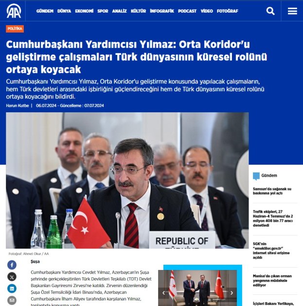 Materiallarda Türkiyə nümayəndə heyətinin rəhbərinin Qarabağın tarixən Azərbaycana məxsus olduğu, Ankaranın BMT-nin İqlim Dəyişmələri üzrə 31-ci Konfransına (COP31) ev sahibliyi etməyə hazır olması və Orta Nəqliyyat Dəhlizinin inkişafının əhəmiyyəti barədə söylədiyi fikirlərə diqqət yetirilir.