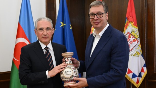 "Noyabr ayında Bakıda keçiriləcək COP29 konfransına hazırlıq işlərinə xüsusi nəzər saldıq. Serbiyanın iqlim dəyişikliyinə qarşı qlobal mübarizəyə töhfə verəcək dayanıqlı inkişafa və ekoloji təşəbbüslərə öhdəliyini vurğuladım və COP29-un əsas diqqət mərkəzində olan enerji keçidinin maliyyələşdirilməsinin, xüsusilə də ənənəvi olaraq fosil yanacaqdan asılı olan ölkələr üçün vacib olduğu barədə razılığa gəldik və qlobal iqlim hədəflərinə və davamlı inkişafa birgə töhfə vermək üçün sıx əməkdaşlıq və təcrübə mübadiləsinə hazır olduğunu bildirdik", - deyə A.Vuçiç əlavə edib.