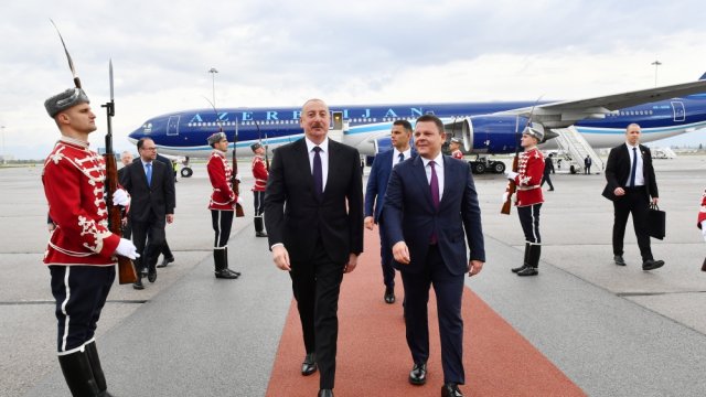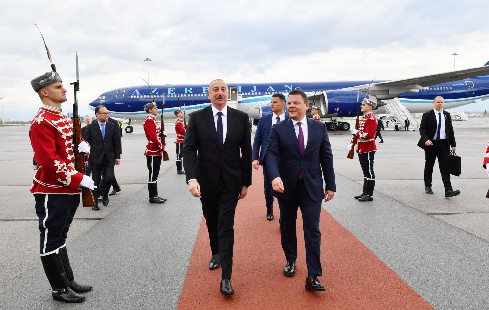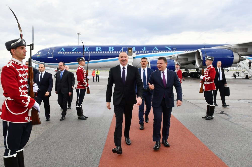 AZƏRTAC xəbər verir ki, hər iki ölkənin Dövlət bayraqlarının dalğalandığı Sofiya şəhərinin hava limanında Azərbaycan Prezidentinin şərəfinə fəxri qarovul dəstəsi düzülmüşdü.