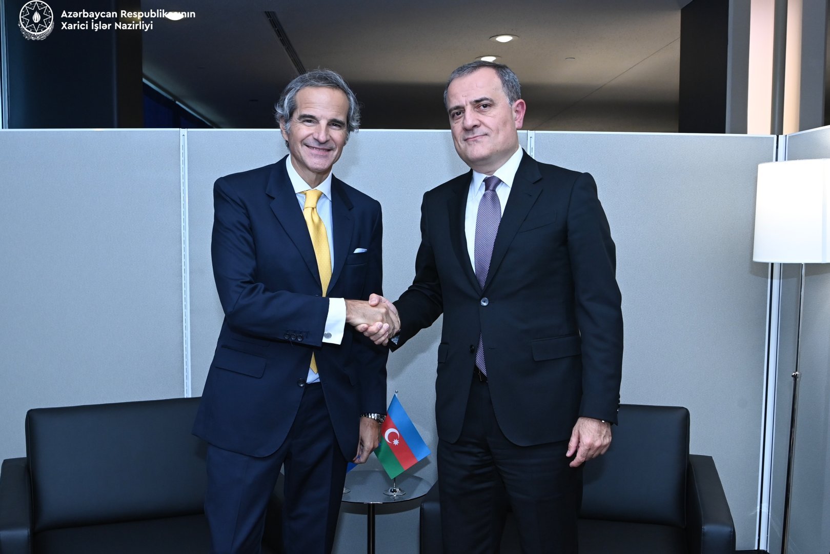 Xarici işlər naziri Ceyhun Bayramov BMT Baş Assambleyasının 79-cu sessiyası çərçivəsində Atom Enerjisi üzrə Beynəlxalq Agentliyin (AEBA) baş direktoru Rafael Qrossi ilə görüşüb.