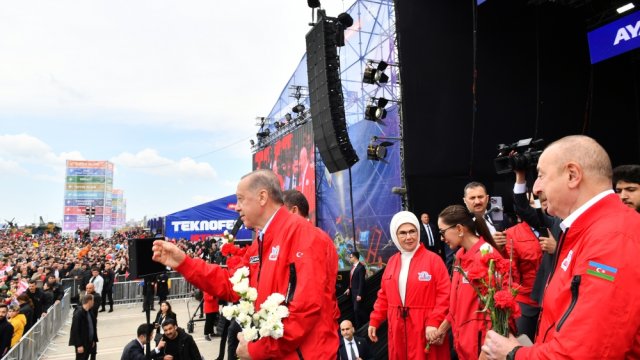 Bir neçə gündən sonra Azərbaycan xalqı çağdaş Azərbaycan dövlətinin banisi, qurucusu Heydər Əliyevin 100 illiyini qeyd edəcək. Heydər Əliyev demişdir: “Türkiyə və Azərbaycan bir millət, iki dövlətdir”. Bu gün biz bunu sübut edirik. Bu gün bütün atalarımızın, əcdadlarımızın ruhu şaddır. Çünki Türkiyə və Azərbaycan bir yerdədir. Atam demişkən, “Bir millət, iki dövlət”, əlavə də etmək istəyirəm, “Bir yumruq!”.