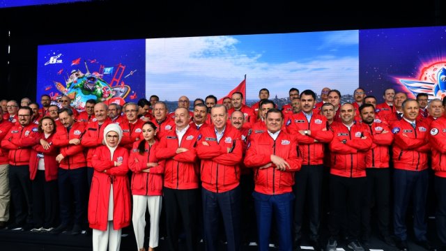 Prezident Rəcəb Tayyib Ərdoğan Türkiyənin yüksək texnologiyalara əsaslanan layihələr həyata keçirdiyini qeyd edərək vurğuladı: “Təkcə son aylarda yaşadığımız inkişafı sizlər də gördünüz. Bir az əvvəl əziz qardaşım İlham Əliyev də dedi: “Kızılelma” havaya qalxdı, “Togg” satışa çıxarıldı. Budur, “Kızılelma”, “Akıncı” qarşımızdadır, “TCG Anadolu” gəmisi Dəniz Qüvvələrinə təqdim edildi”.