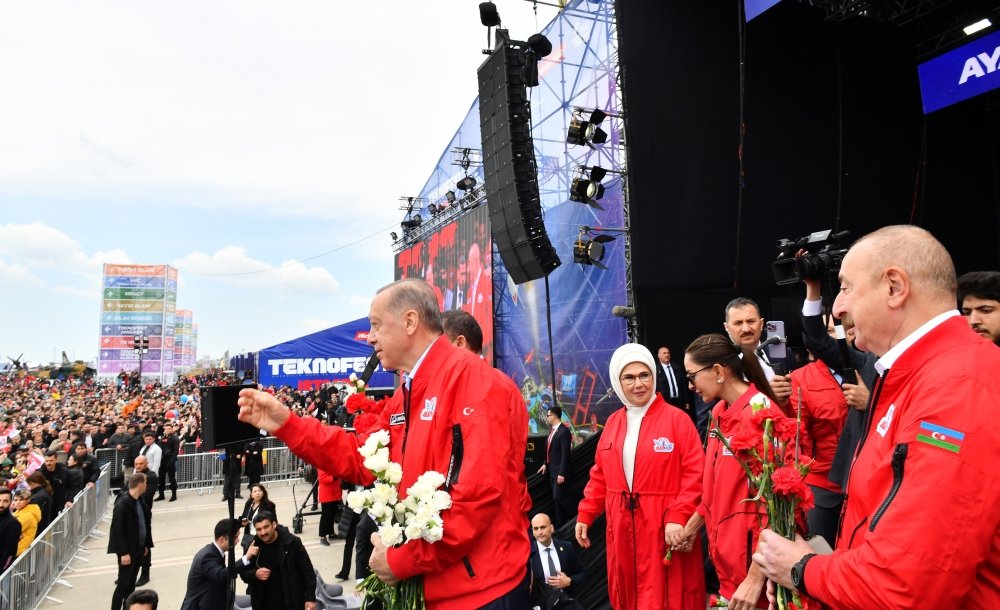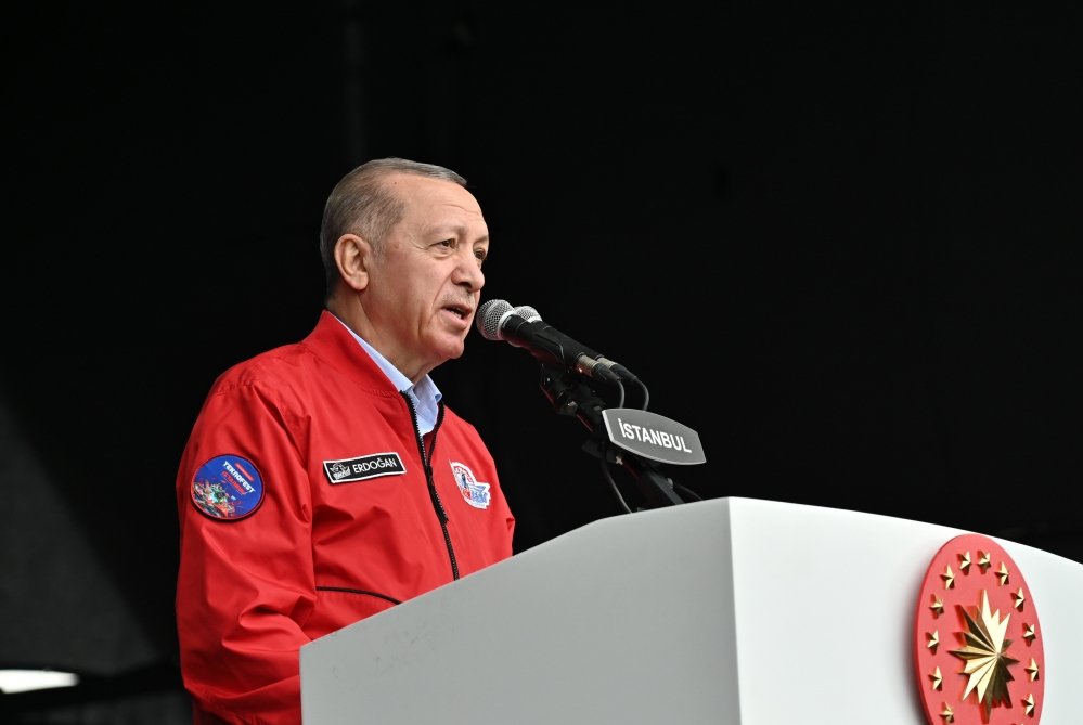 İndiyədək “TCG Anadolu” gəmisini 100 minə yaxın vətəndaşın ziyarət etdiyini diqqətə çatdıran Türkiyə Prezidenti Qara dənizdə çıxarılan təbii qazın istismarına başlanılmasını, milli döyüş təyyarəsinin, “Gökbey” helikopterinin, “Hürjet” və “ATAK-2” qırıcılarının, “Altay” tankının istifadəyə verilməsini Türkiyənin son illərdə böyük uğurlarının göstəricisi kimi dəyərləndirərək, “TEKNOFEST”in bütün bu nailiyyətlərin rəmzi olduğunu qeyd etdi.