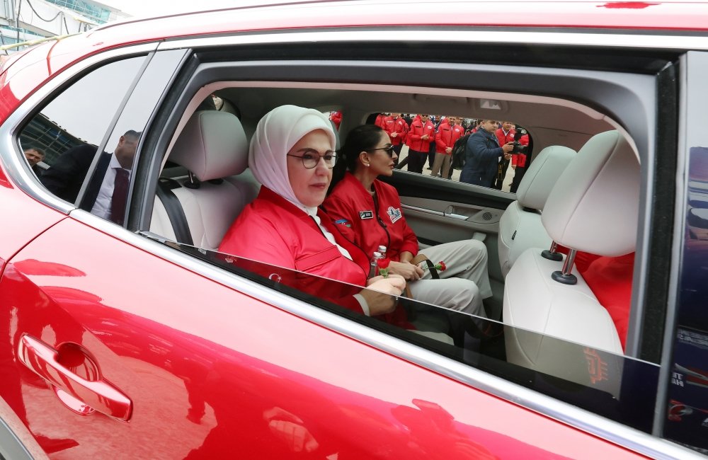 AZƏRTAC xəbər verir ki, Türkiyə Prezidenti Rəcəb Tayyib Ərdoğan və xanımı Əminə Ərdoğan, Azərbaycan Prezidenti İlham Əliyev və birinci xanım Mehriban Əliyeva qardaş ölkənin texnoloji inkişafının daha bir göstəricisi olan “Togg” avtomobili ilə festivalın keçirildiyi məkana gəldilər.