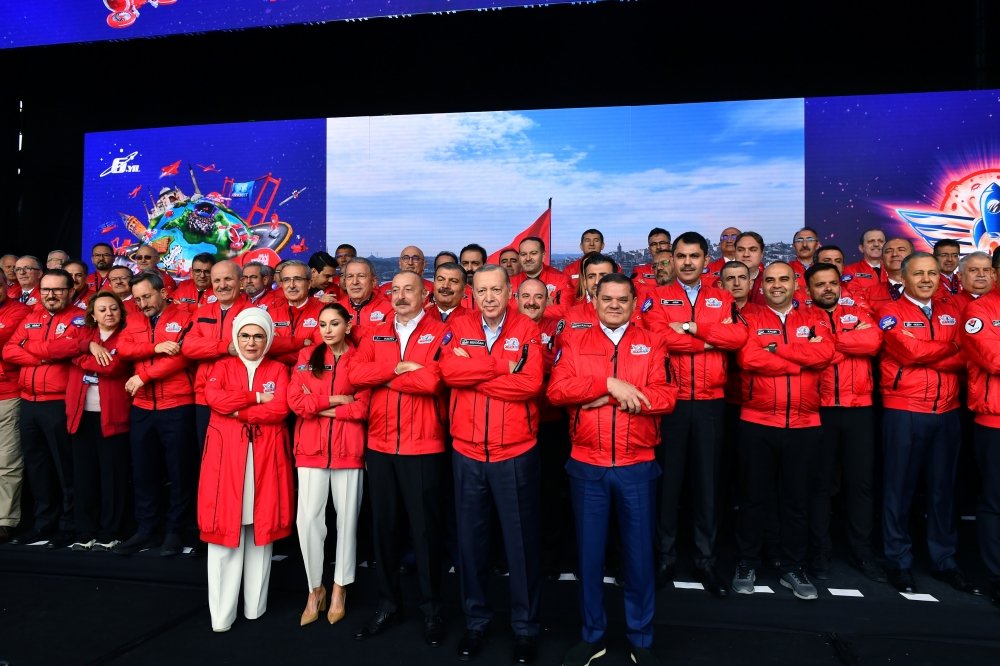 Bu gün “TEKNOFEST”də iştirak edərkən “TEKNOFEST”in qurucusu, əziz qardaşımız Selçuk Bayraktarın xidmətlərini də qeyd etmək istərdim. Selçuk bəy Azərbaycanda dəfələrlə olmuş, o cümlədən azad edilmiş torpaqlarda, Şuşada. Son gəlişində - aprelin 3-də Azərbaycanda olarkən biz gələcək işbirliyi haqqında danışdıq və Azərbaycanda “Bayraktar” mərkəzinin yaradılması haqqında razılığa gəldik. İnşallah, yaxın gələcəkdə Azərbaycanda “Bayraktar” mərkəzi yaradılacaq, orada təhsil, xidmət, istehsal da olacaqdır. Selçuk bəy Bakıda olarkən “Kızılelma”nın bir maketini hədiyyə etdi. Mən fürsətdən istifadə edərək “Kızılelma” ilə bağlı bütün qardaşlarımızı təbrik etmək istəyirəm və ümid edirəm ki, yaxın gələcəkdə “Kızılelma” Azərbaycanın səmasında da olacaqdır. “Kızılelma” havada, “Altay” və “Togg” quruda, “Anadolu” dənizdə - bugünkü Türkiyə budur.