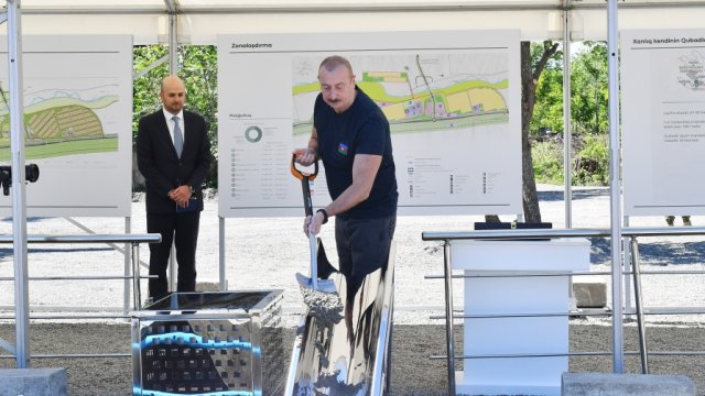 Prezident İlham Əliyev Xanlıq kəndinin təməlini qoydu.